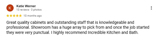 Incredible Kitchen and Bath is a trusted home renovation company in Jacksonville, FL, specializing in custom kitchen and bathroom remodeling . We focus on delivering high-quality materials, expert craftsmanship, and elegant designs to transform your home with precision and style.